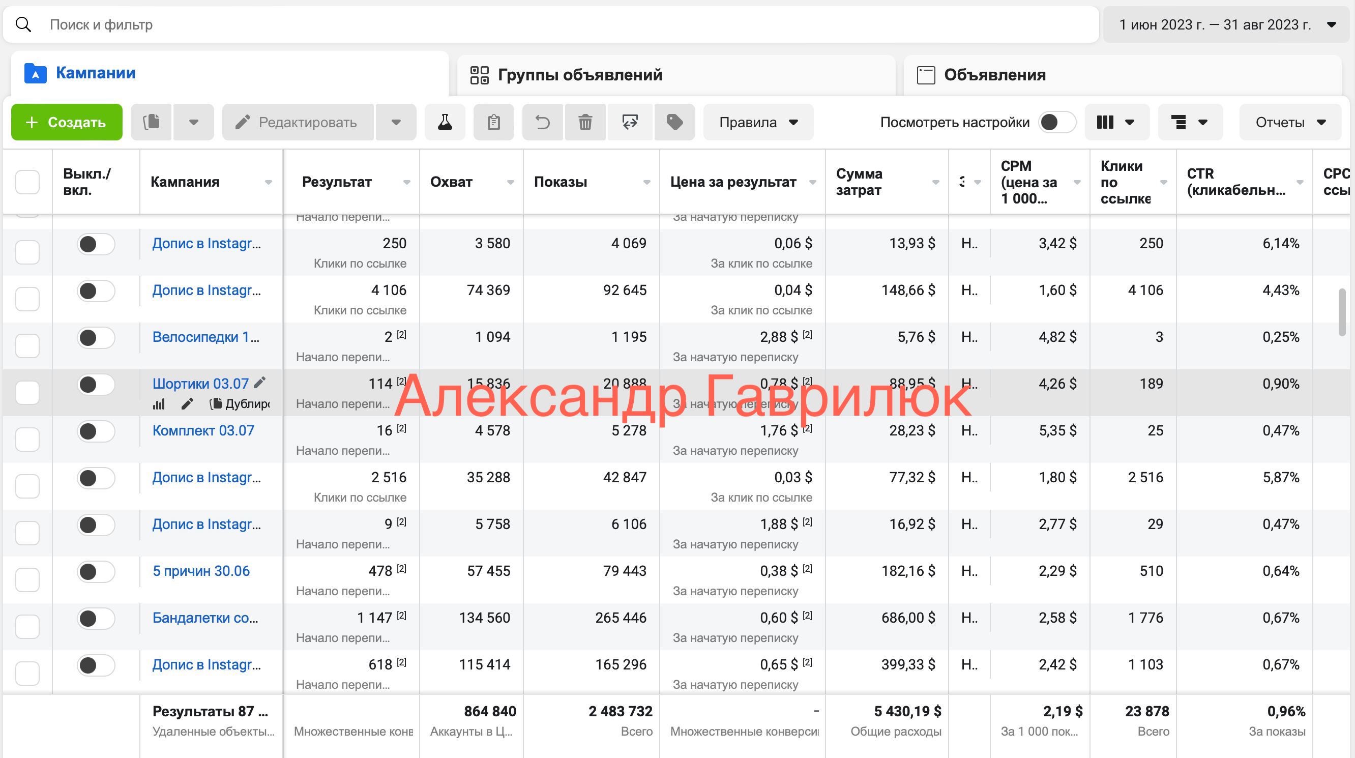 - Аналіз всіх рекламних кампанії які були запущені до мене