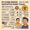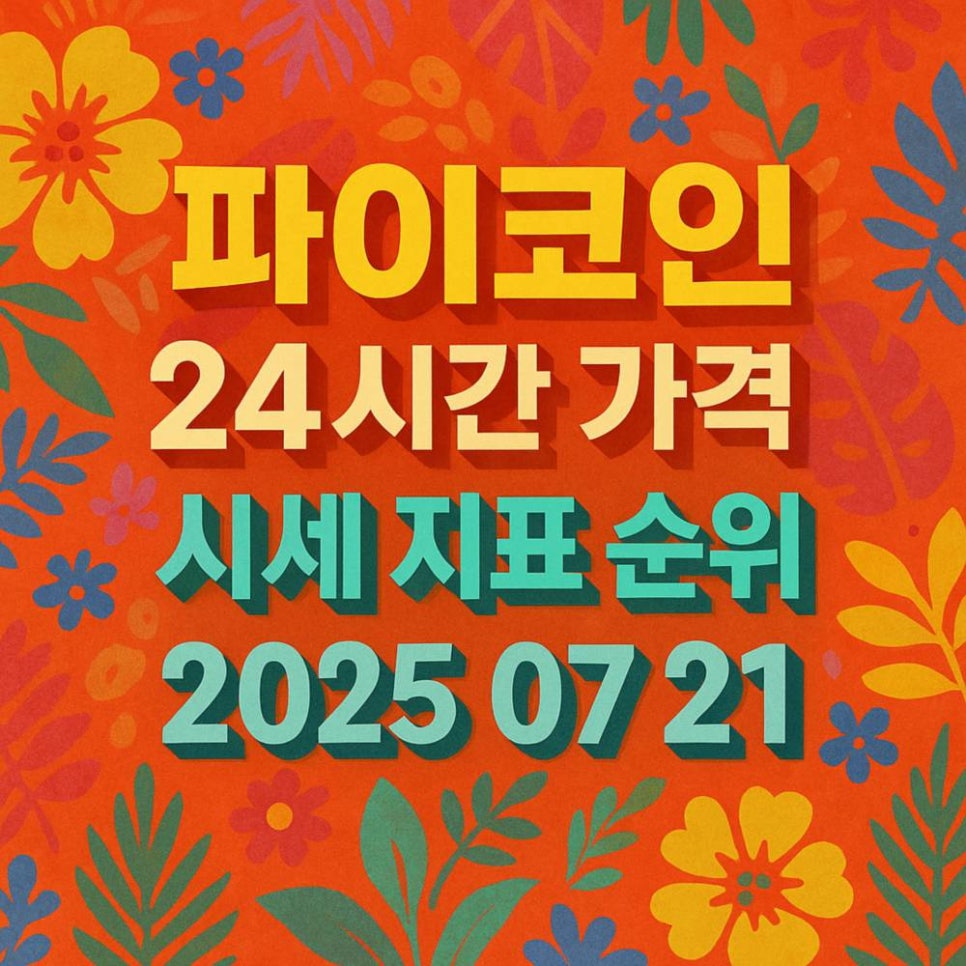 열대 배경 위에 ‘파이코인 24시간 가격 시세 지표 순위 2025 07 21’ 문구를 3D 입체 효과로 배치한 정사각형 그래픽