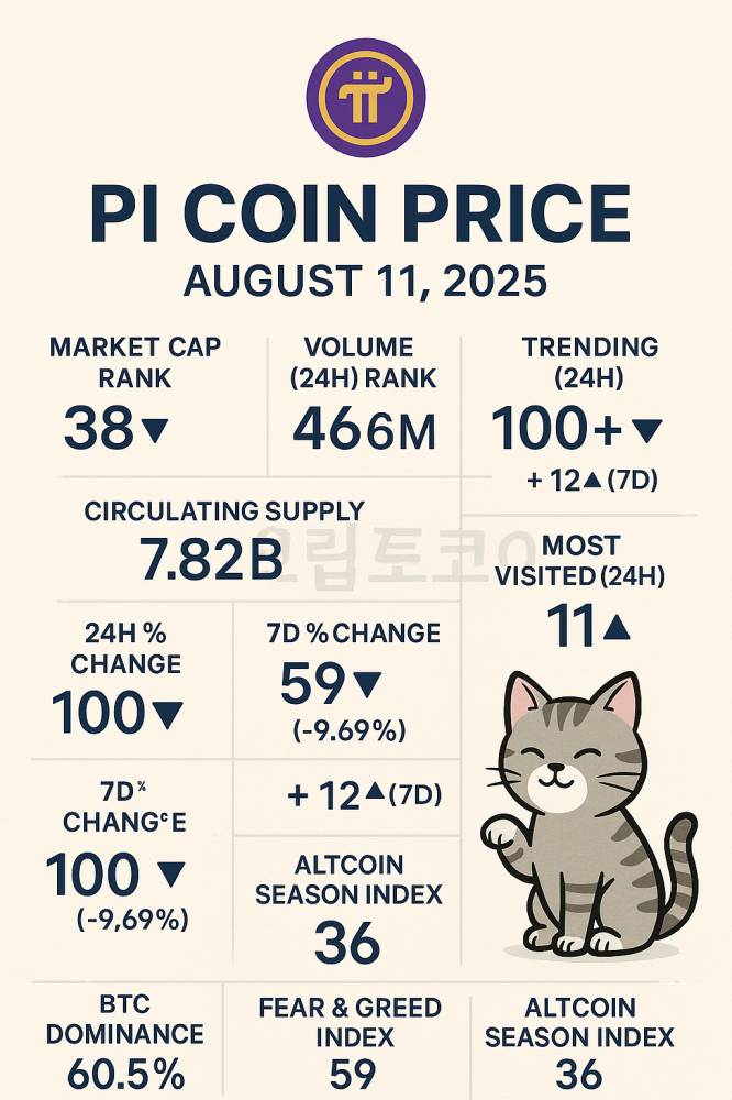 파이코인 2025년 8월 11일 가격 통계 인포그래픽
