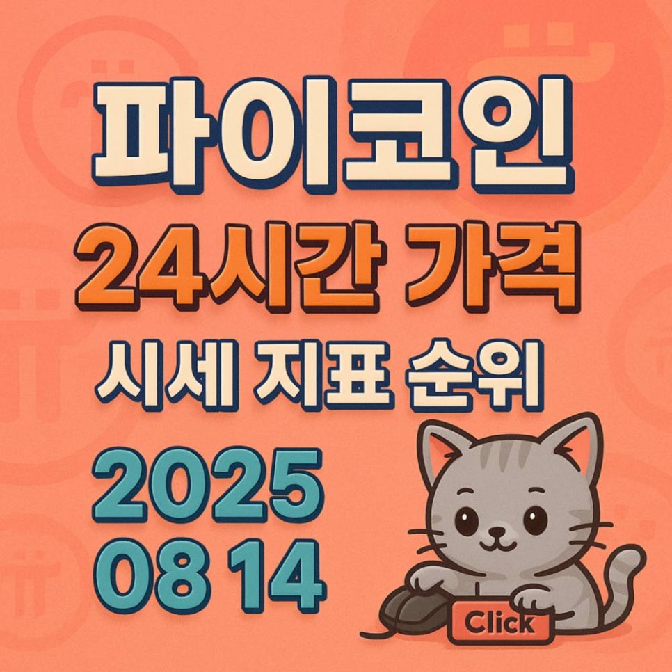 코랄 톤 배경에 ‘파이코인·24시간 가격·시세 지표 순위·2025 08 14’ 문구가 큼직하고 입체적으로 정렬된 1:1 인포그래픽