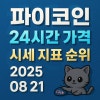 블루 톤 배경에 ‘파이코인·24시간 가격·시세 지표 순위·2025 08 21’ 타이포를 입체 그림자 효과로 중앙 정렬한 정사각형 카드 디자인