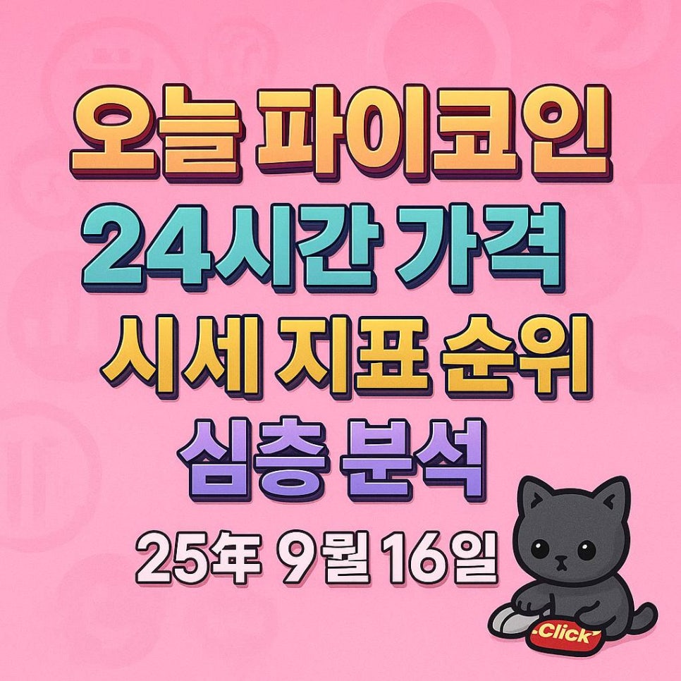 오늘 파이코인 24시간 가격·시세 지표 순위·심층 분석 — 2025년 9월 16일, 핑크 그라데이션 배경에 3D 효과의 다채로운 텍스트 디자인