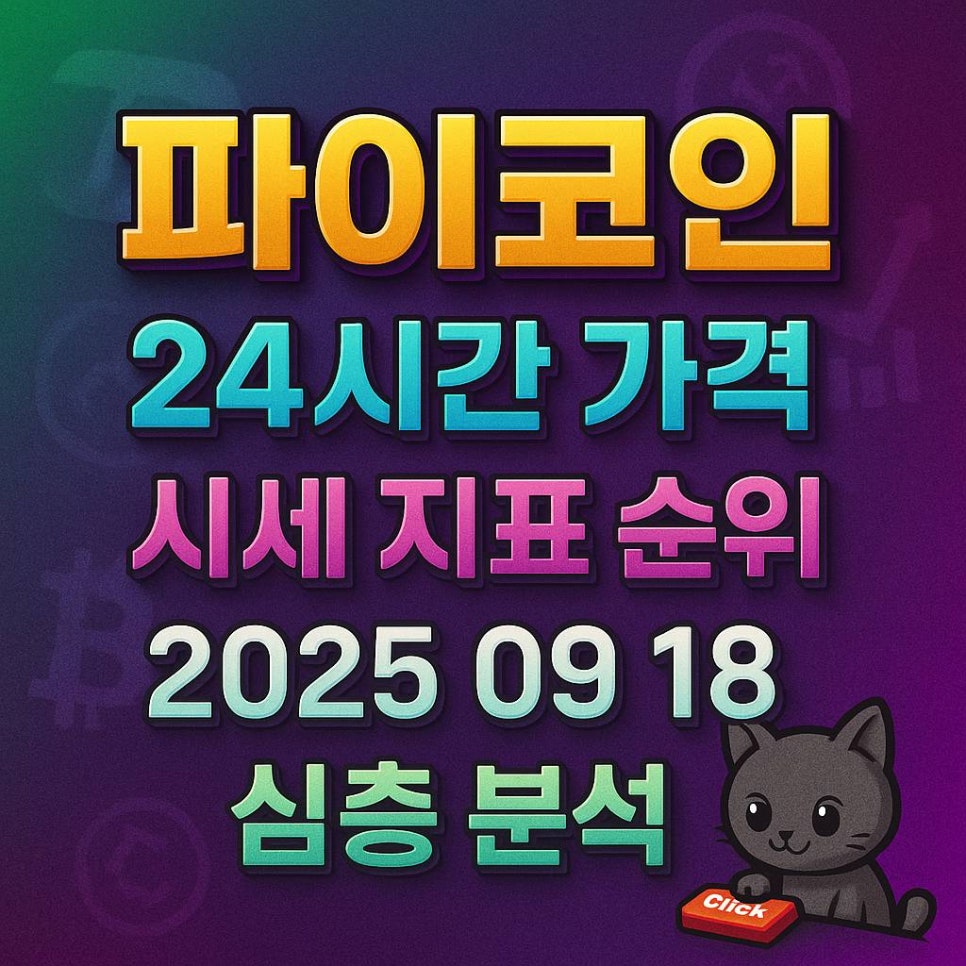 그린–퍼플 그라데이션 배경 위에 ‘파이코인·24시간 가격·시세 지표 순위·2025 09 18·심층 분석’ 굵은 입체 텍스트가 중앙 정렬된 1:1 포스터
