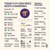 오늘 파이코인 가격 시세 지표 순위 2025년 9월 18일- 암호화폐 정보 사이트인 코인마켓캡의 2025년 9월 18일 오전 9시 00분 데이터 기준 파이코인은 시가총액은 전일 42위에서 43위입니다.(29.14억 달러에서 29.22억 달러)