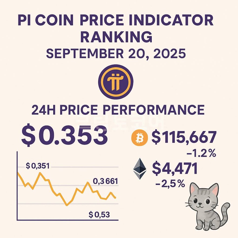 Pi Network 가격 및 글로벌 암호화폐 시장 지표 인포그래픽 (2025년 9월 20일)