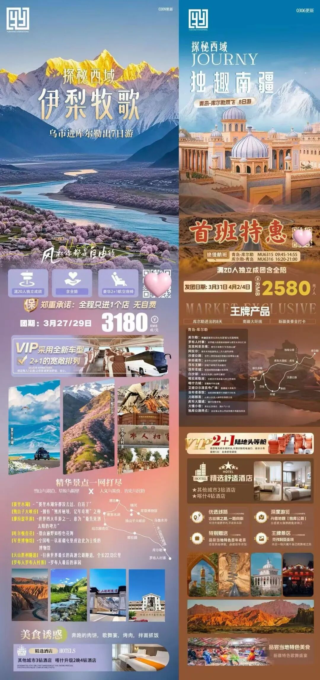 本次旅游为青岛独立全陪班,仅进1店,纯玩无购物。同时推出3月31号/4月2/4号独趣南疆双飞8日游,山东独立全陪班,绝佳航班。