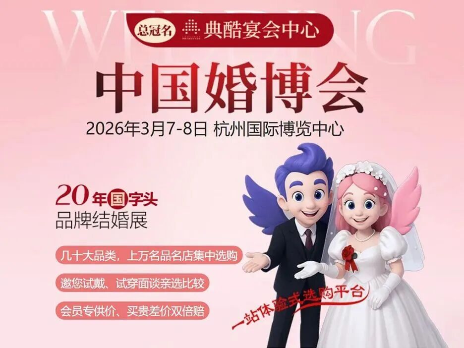 杭州婚芭莎婚博会(3月7-8日,杭州国际博览中心)汇聚1800+家参展商,覆盖婚宴酒店、黄金珠宝、婚纱摄影等20大品类,会员享买贵差价双倍赔、订单抽奖等福利。免费领票。