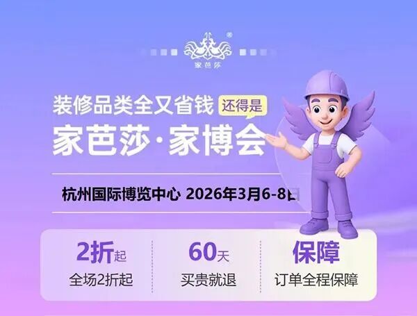 杭州家芭莎家博会(3月6-8日,杭州国际博览中心)涵盖家电、家具、卫浴、地板等全品类,全场2折起,60天买贵就退。扫码免费领票。