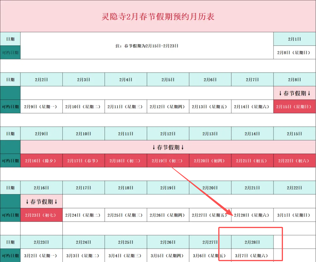 杭州灵隐寺预约提醒!2月28日可预约3月7日(周六)。灵隐寺位于杭州市西湖区灵隐路,开放时间为7:30-17:30,17:00停止入园。
