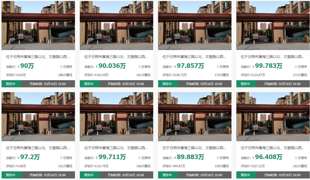 日照市东港区人民法院发布公告,将于2026年3月16日10时至2026年3月17日10时止(延时除外),在京东网司法拍卖平台(法院账户名:日照市东港区人民法院,网址:http://sifa.jd.com/1950)进行公开拍卖。此次拍卖标的为位于日照市黄海三路以北、文登路以西海悦府小区的共31套房产。