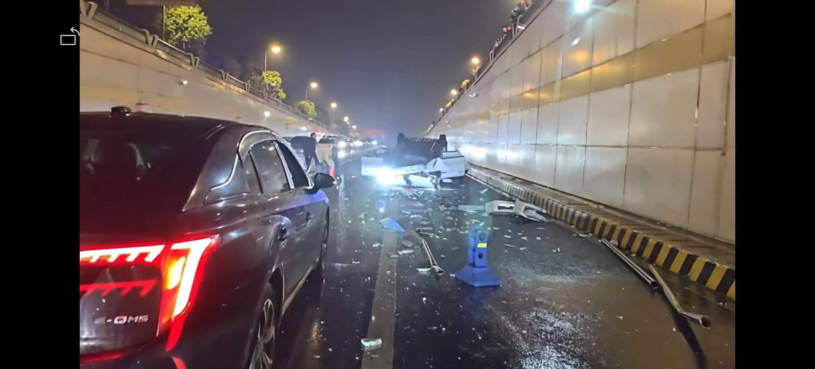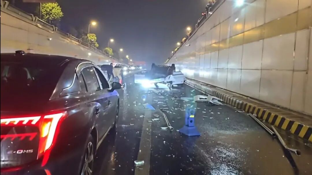 2月28日晚22点左右,锦江区中环路锦绣大道段、四川师范大学狮子山校区南大门附近,一辆行驶在静安路的新能源汽车撞破护栏,坠落至下穿道路,车身倒扣,落差约七八米,导致驾驶人一人死亡。