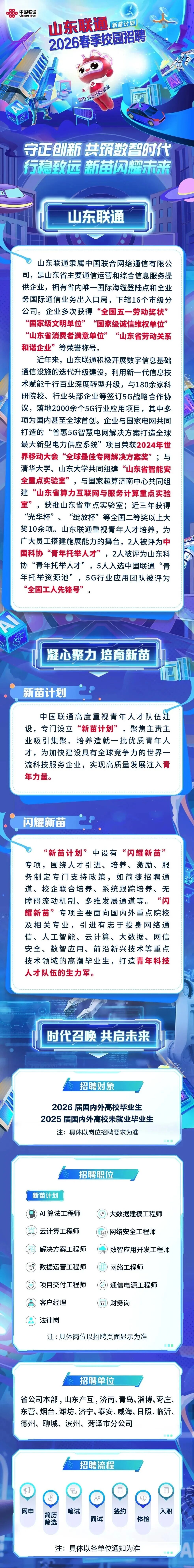 山东联通在济宁地区进行招聘。有意者可通过扫描二维码或回复"联通"查看报名附件和报名方式。来源:中国联通。