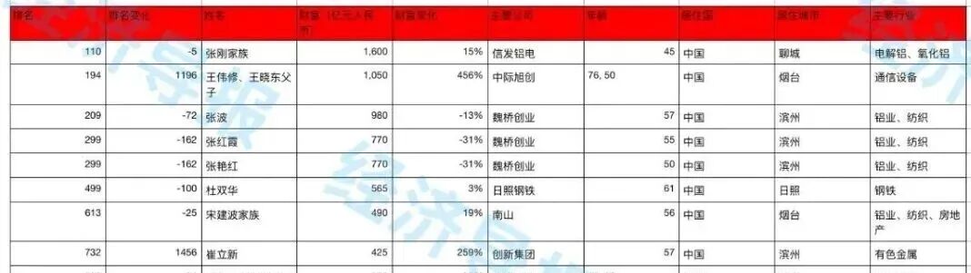 3月5日,胡润研究院发布《2026胡润全球富豪榜》。信发铝电掌舵人张刚家族位列全球富豪榜第110位,成为山东财富最高的上榜企业家。山东其他上榜企业家还包括魏桥创业的张波、张红霞、张艳红,以及日照钢铁的杜双华(565亿元)。杜双华凭借565亿元的财富成为日照首富。
