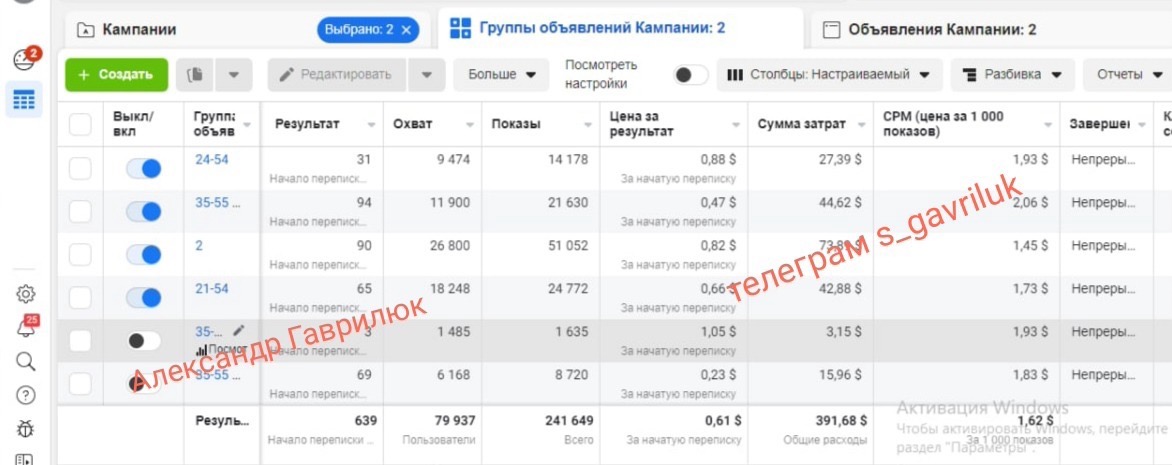 - Створив нові креативи та рекламні тексти та запустив рекламу з ціллю повідомлення дірект