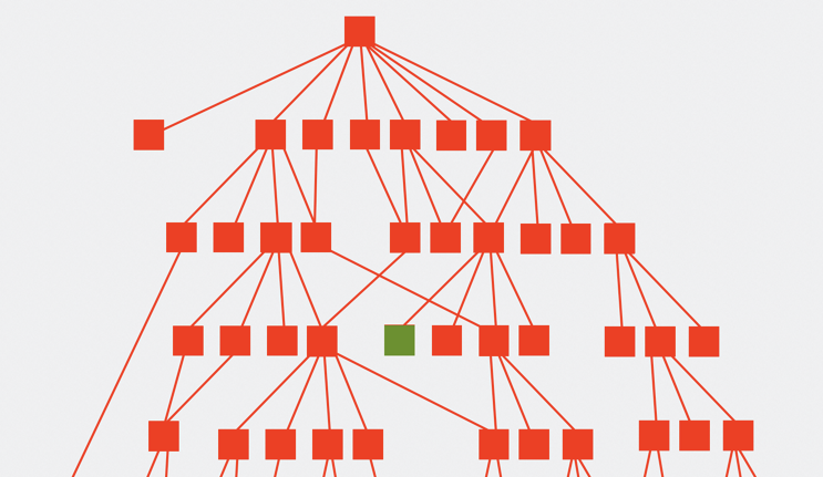 Nettstedskart for ein typisk nettstad. Ein eller annan stad, djupt nede i strukturen, finnes den faktiske sida som brukaren leiter etter.