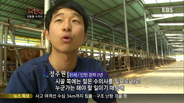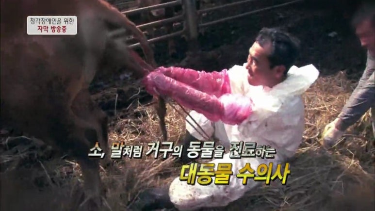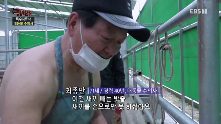 나는 지금까지 수의사가 그런 직업들 중 하나라고 생각했다. 동물을 사랑하는 사람이 동물을 위한 일을 하며, 돈 걱정도 안하고 살 수 있는 직업. 하지만 극한직업에서 소개하는 대동물 수의사는 내가 생각하는 수의사랑 많이 달랐다. 수의사 중 7.95%만 대동물 수의사로 업무과중이 극심하다. 근무지는 보통 가축업을 많이 하고 있는 시골 지방에다가, 대동물들의 발길질 한 번에도 다칠 수 있는 위험도 많이 도사리고 있다. 더러운 농장에서 동물들을 진료하고, 수술하며 피도 많이 본다. 그리고 재산이나 다름 없는 대동물들에게 긴급 상황이 생기면 긴급 출동까지 하는 정말 말그대로 극한직업이었다.