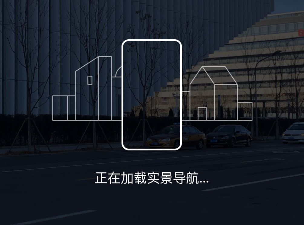进入实景导航功能后需要扫描周围的建筑物和街道标志,以便校准实景环境。为了使这个过程自然流畅,我们采用遮罩动画的形式,给用户以明确的引导。