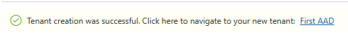 [ ] When the Tenant has been created, you will see text indicating Tenant creation was successful. Click here to navigate to your new tenant.