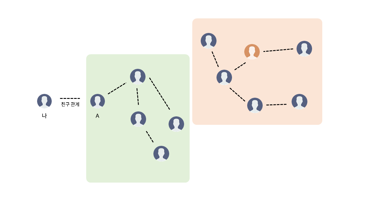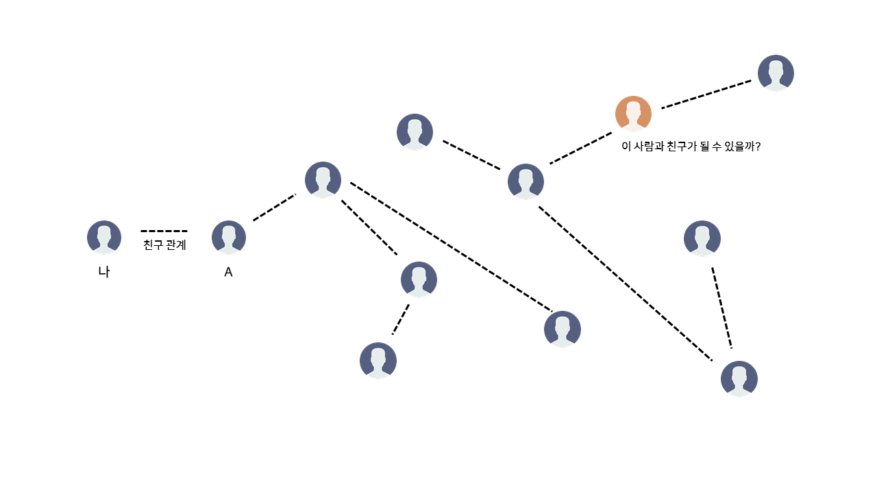 다음과 같은 관계도에서, 내가 주황색으로 표시된 사람과 친구 관계가 될 수 있을지는 어떻게 알 수 있을까?