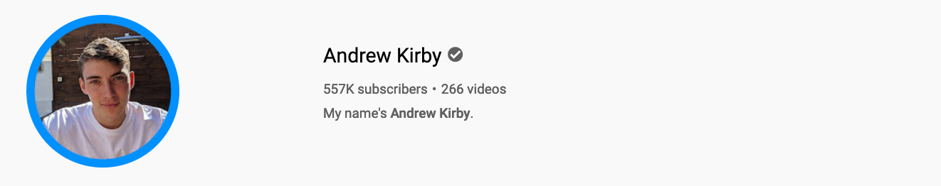 My name's Andrew Kirby. Over the course of 2 years, IÂ grew my channel to 557K subscribers. My channel has nearly 27 million views. I didn't feel like there was a good resource for viral growth out there, so I made this.