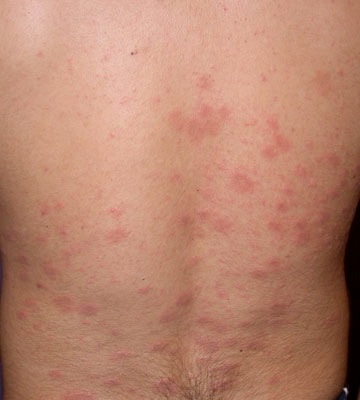 | May follow a characteristic distribution with the longitudinal diameters of the oval lesions running parallel to the line of Langer. This may produce a 'fir-tree' appearance | ||
