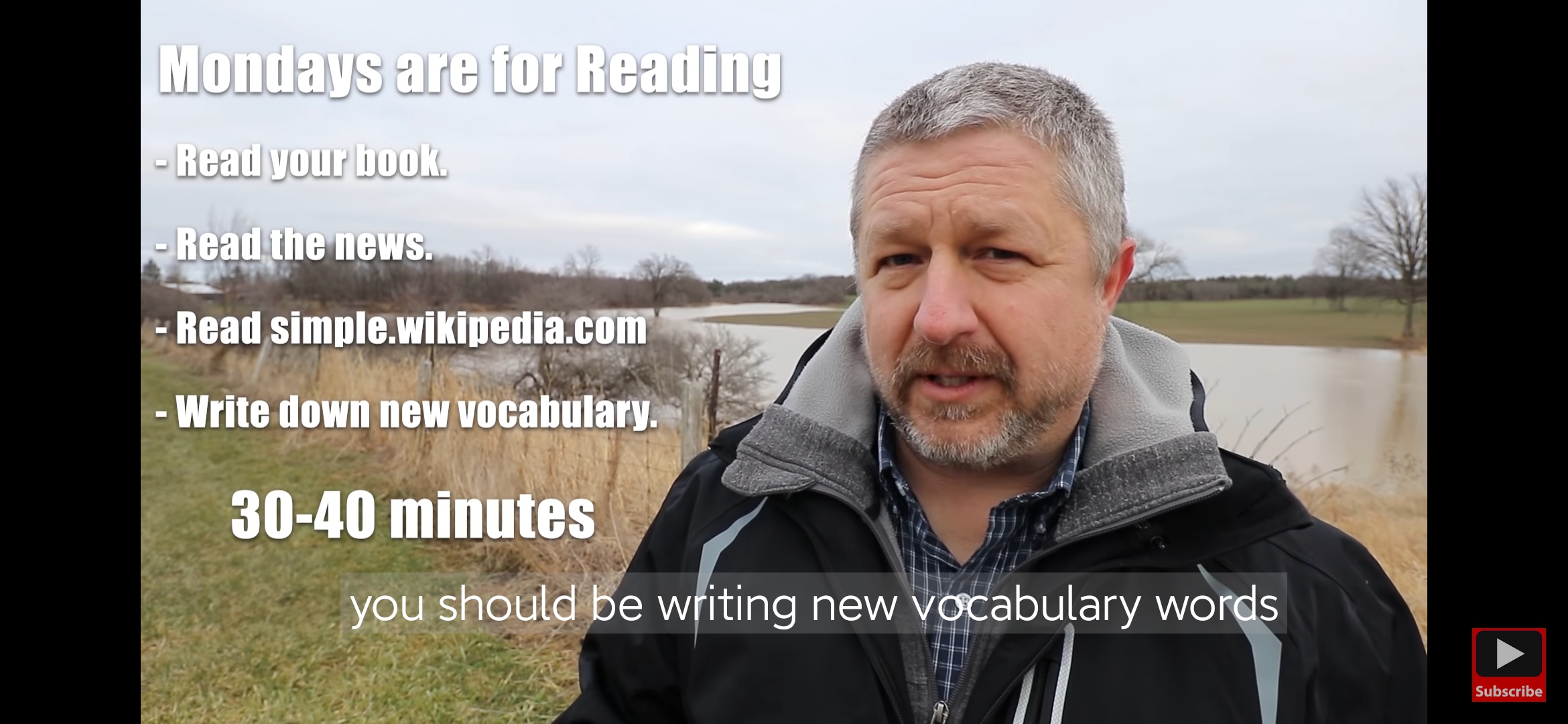 On the Monday, you should spend 30 to 40 minutes on reading.