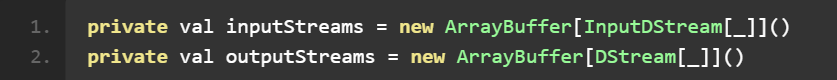 其他的都比较容易理解,最重要的是 graph ( DStreamGraph ),该类里面有两个核心的数据结构是: