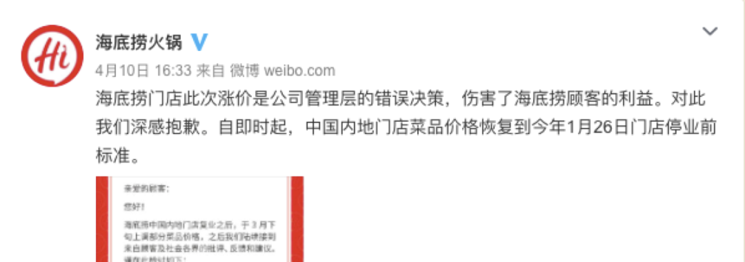 这几天看海底捞涨价事件,从被狂喷,到顶不住压力官方道歉,群众胜利了!